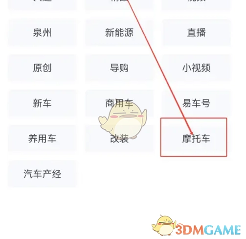 3、在页面上选择【摩托车】选项并点击,点击后就能查看啦!