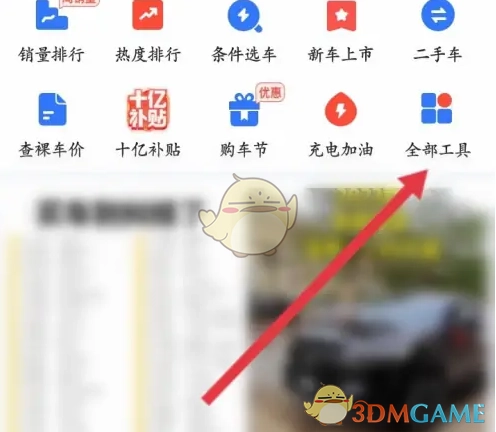 1. 打开易车app,在其页面中点击底部的“全部工具”选项。