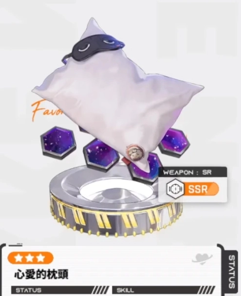 珍爱的枕头(普琳玛):这是一把 SSR 品质的狙击步枪。别看这个小小软软的枕头模样平平无奇,实则蕴含着神奇魔力。借助它,普琳玛能够实现飞天、瞬移以及遨游太空等种种奇妙幻想。在激烈的战斗中,普琳玛凭借这珍爱的枕头,宛如被赋予了无尽的想象力与创造力。如此一来,这把狙击步枪在她手中,总能给予敌人出其不意的打击。
