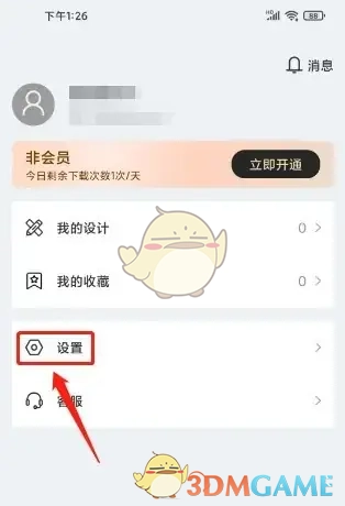 2、进入“我的”界面,点击【设置】选项。