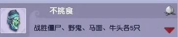 4、饮食均衡:在守护玄奘进行超度的过程里,成功击败僵尸、野鬼、马面、牛头,每种怪物各5只