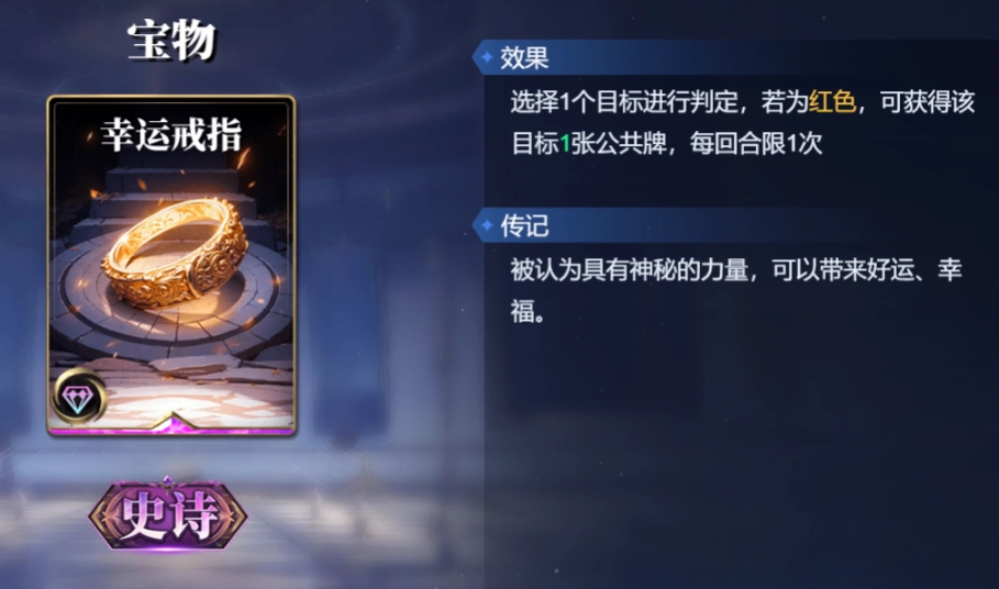 与此同时,女娲还能够携带星界之门。对女娲而言,8点智力与6点速度的属性要求很容易达成。装备星界之门,能够间接提高女娲的手牌数量上限。而幸运戒指则可以在每回合尝试偷取对手的手牌,打乱对手的节奏。