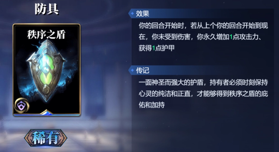 防具可选择秩序之盾。秩序之盾具备这样的效果:自上个回合起直至当前,若未受到伤害,便会永久增加1点攻击力,同时获得1点护甲。需要注意的是,女娲的技能【抟土造灵】属于消耗生命值,这并不等同于受到伤害。因此,在装备秩序之盾后,依旧能够使用【抟土造灵】来获取公共牌。