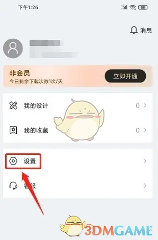 2、进入“我的”界面,点击【设置】选项。