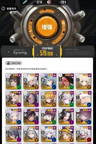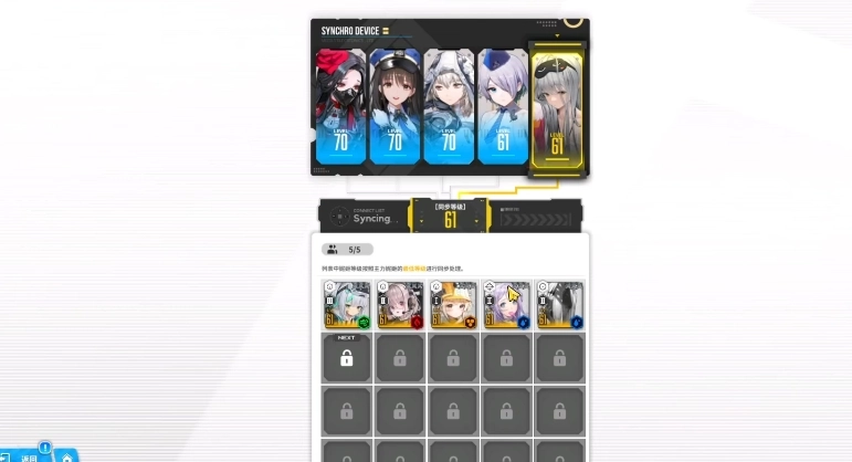 同步器的运作方式颇具技巧,它依据玩家所拥有的前五个人型中等级最低的那一位(前提是人型等级最高),来对其他角色进行等级同步。在游戏当前阶段,该功能的主要作用是突破ssr角色的等级上限,如此一来,玩家手中强大的ssr角色便能展现出更为强劲的实力。对于新手玩家来说,游戏前期资源极度匮乏,每一份资源都弥足珍贵。在这种情形下,玩家通常最多只能悉心培育出一个完整且相对稳定的作战阵容。
