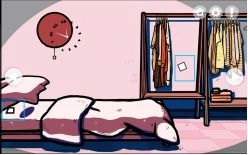 点击【枕头】和悬挂的【衣服】可以找到照片3和照片4 ,也可以发现墙上的时钟是可以调的