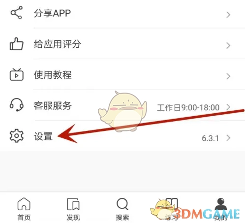2. 点击箭头所指的“设置”选项