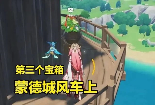 第三个宝箱:关于第三个宝箱,用一句话就能概括,巨大叶片转动,位置离西风骑士团很近!