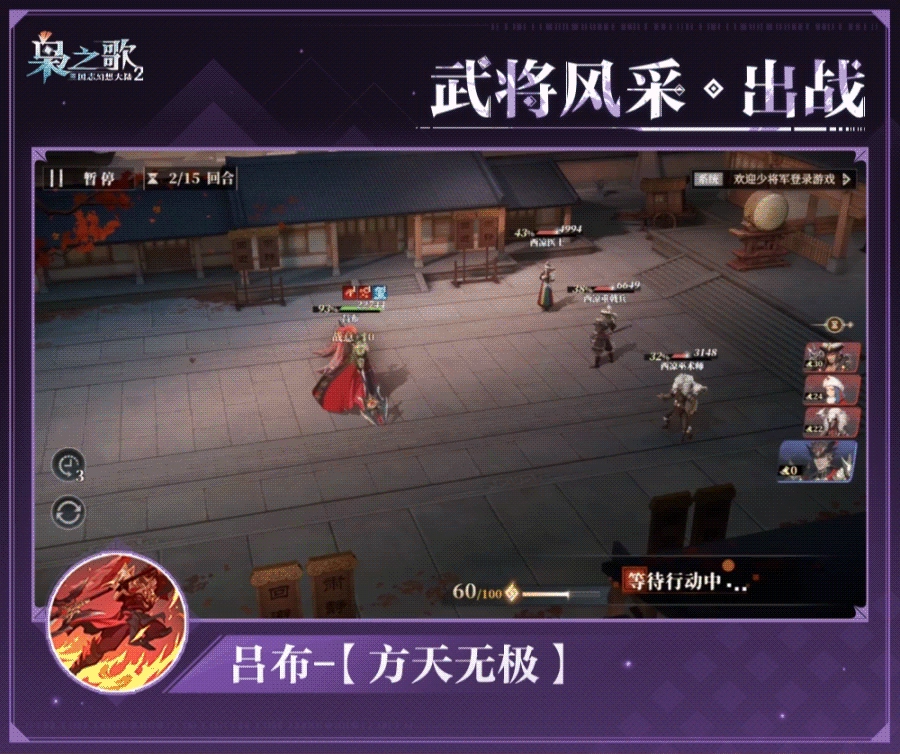 战术:利用灼烧压血线,吕布触发绝技增伤,实现AOE爆发。