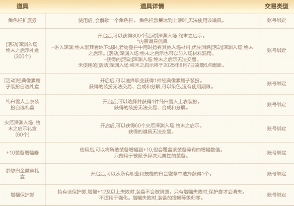 请注意,活动期间获取的礼盒以及有使用期限的道具,将于2025年8月7日早上6点被删除,请及时使用。