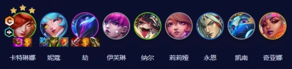 卡特琳娜与妮薏,还有劫、伊芙琳,以及纳尔、莉莉娅,另外还有永恩、凯南和奇亚娜。