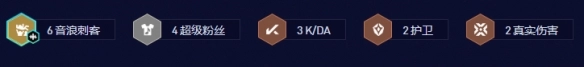 6个音浪刺客、4位超级粉丝、3个K/DA、2名护卫、2个真实伤害