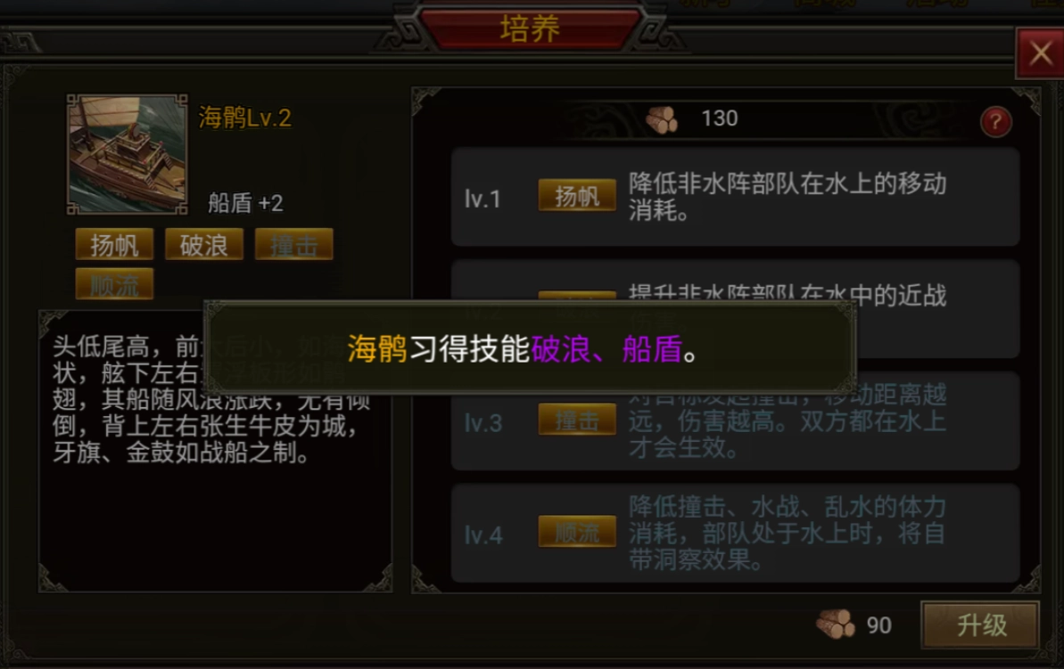 2、战船的培养