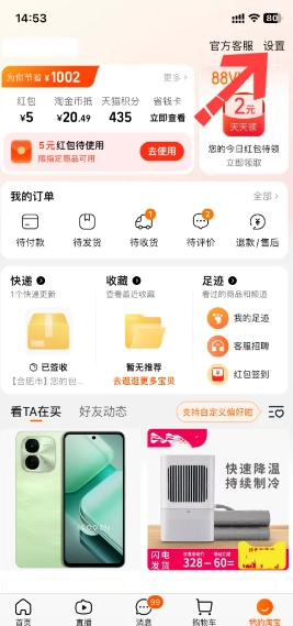 1. 进入淘宝的“我的淘宝”页面,点击“设置”选项。