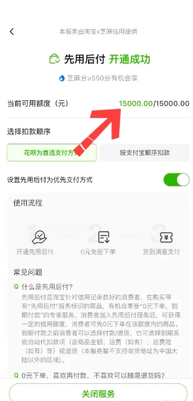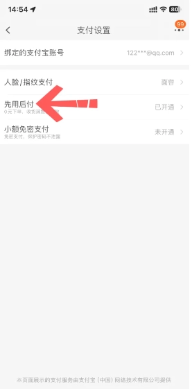 4、进入先用后付页面,就能看到与先用后付相关的信息。