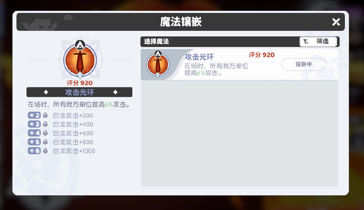 进入主角页面的镶嵌魔法,点击巨龙右下角的四个槽位(槽位随等级解锁)。