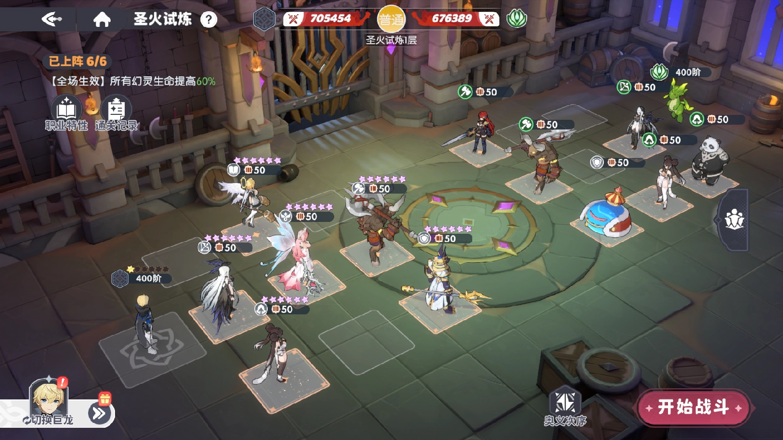 在试炼中,每层关卡都遵循独特的试炼法则,比如:增强前排角色的攻击力;提高后排角色的生存能力;对特定职业的输出加以限制。这些法则构成了试炼的策略基础,玩家需要据此制定相应战术。