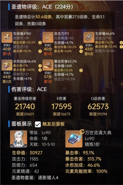 圣遗物方面,仅强烈推荐猎人,其他的都只是过渡选择。由于双爆武器极易达成200爆伤,因此以下内容均是基于百分百暴击率来考量的,双爆需达到64/200+ (数据真实可靠,那些认为高伤害数字会降低暴击的情况,还请谨慎看待) 。
