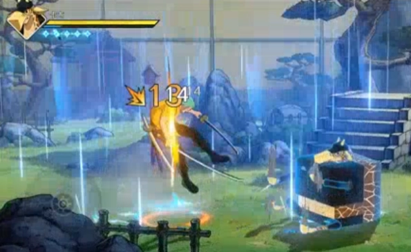 卡古人形态拥有五段普攻,不仅动作流畅,攻击范围也很广。前四段为双刀交替的快速斩击,而最后一段会转变为指枪的远程攻击,可迅速穿透敌人。不仅如此,人形态下的技能操作性也极强。就像1技能“月步”,能使卡古短暂腾空,并借助摇杆缓慢移动,在空中再次按下技能,便可发动高速旋转攻击,打乱敌人节奏。2技能“岚脚”,卡古会先将双刀插入地面作为支撑,随后迅速踢出两道岚脚斩刃,造成大范围伤害。
