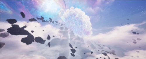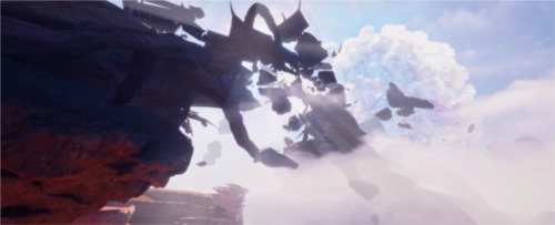 穿过缝隙,眼前瞬间展现出一个奇异的世界。破碎的建筑四处散落,纷飞的乱石随处可见……这景象,似乎在哪见过?适应了一阵后,我们还是辨认出了这里是九黎,只是曾经熟悉的风景已全然不见,取而代之的是天翻地覆的变化。