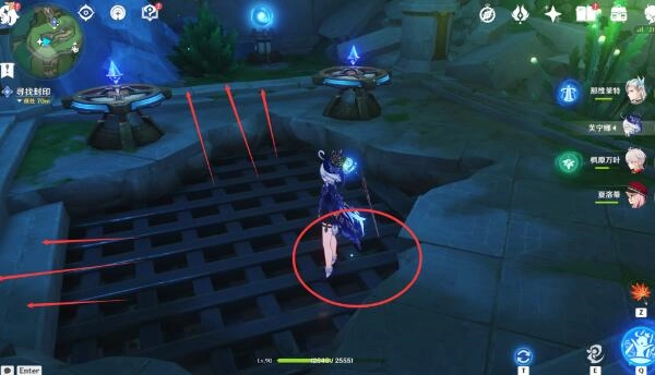 1、首先,我们要前往如图所示的七天神像附近区域,在该区域周边寻找封印。