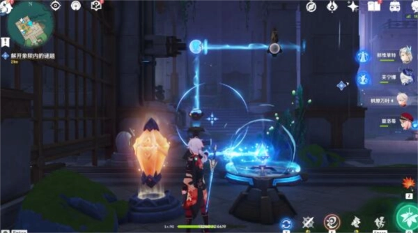 4、击败附近的敌人将机关的激光位置调整,使其超过白球即可打开。