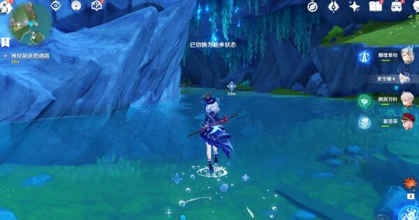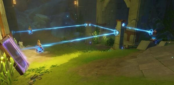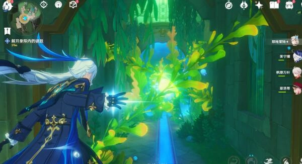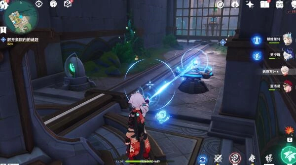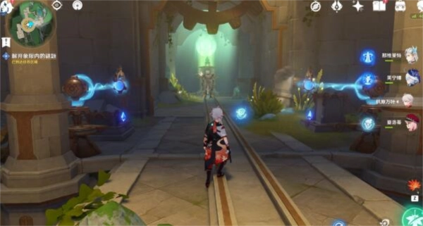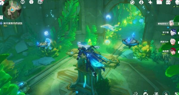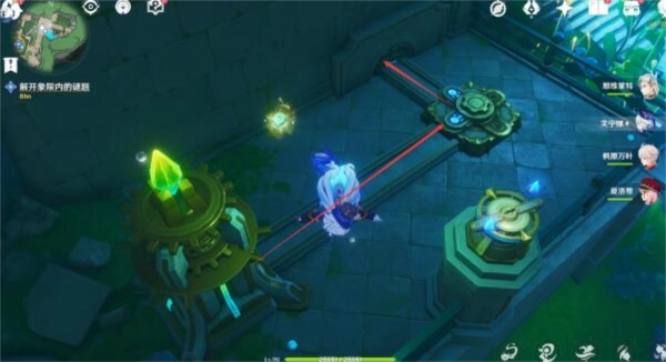 7、于另一处的水道操控机关,穿过水圈,待把所有水道连接完毕,便会出现敌人,战斗结束后能获取一个宝箱。