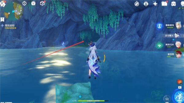 1、首先前往海面的洞窟中,在下图所示的位置找到封印。