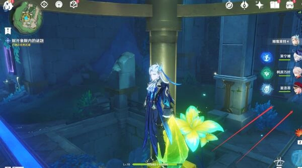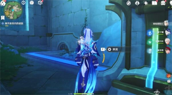 3、进入遗迹内并找到机关,按照下图所示的方式操作,放流将水道连通。
