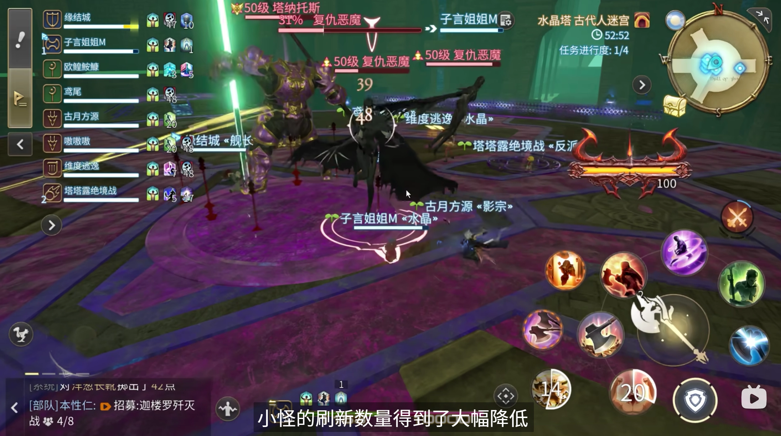 首先,道中小怪的数量和血量有所削减。原本得靠三个队伍才能消灭的小怪,如今即便只有8个人,也能迅速打完。