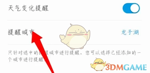 5、在弹出的城市选择界面里,挑选你想要设置提醒的城市,点击该城市即可设置成功,具体操作可参考图示。
