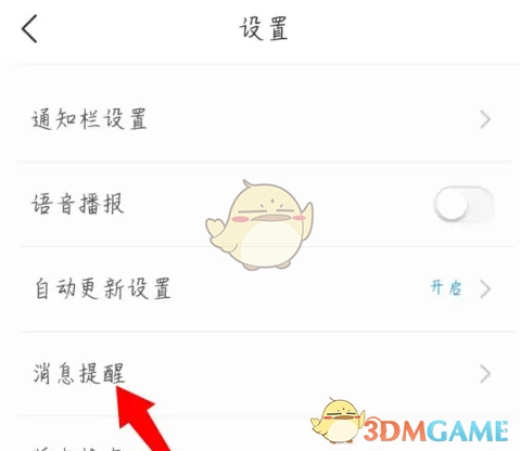 3、在设置中可找到消息提醒,点击将其打开,具体位置如图所示。