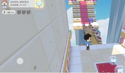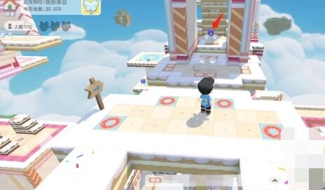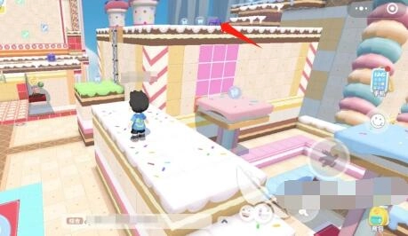 9、触动黄色机关后,捡起此地的蝴蝶,接着走过此处的草莓蛋糕桥。