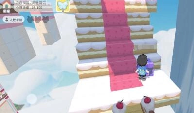 10、向前走便能触发一个黄色机关,触发后还会生成另一座草莓蛋糕桥。