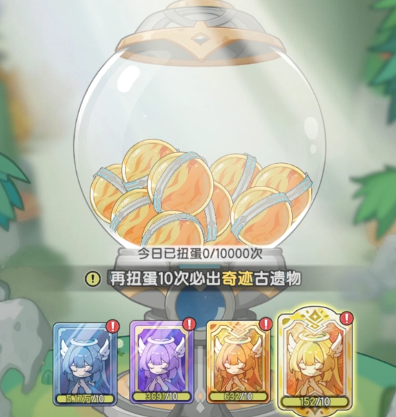 在游戏中,扭蛋机是一项设定,不过一开始它并不会开启。玩家得将自身等级提升至30级,方可解锁古遗物抽奖。届时,便能看到一个卡通扭蛋机。通过这台扭蛋机,玩家能够抽取大量奇迹古遗物,每件古遗物都具备相应属性,借助这些属性,角色能有更出色的表现。若玩家想要抽奖,就需消耗对应的元素牌。元素牌可通过完成主线和支线任务获取,进而兑换更多抽奖机会。