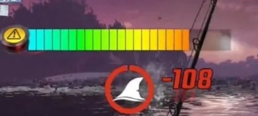 3、一旦出现奇珍鱼的提示,就缓缓收紧鱼线,待怒气值蓄满后摆动鱼竿。