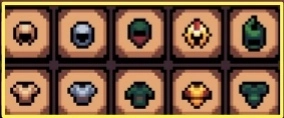 这个游戏的装备就三栏,头盔,衣服,戒指。头盔和衣服比较固定,一共就五种可制作的帽子衣服。