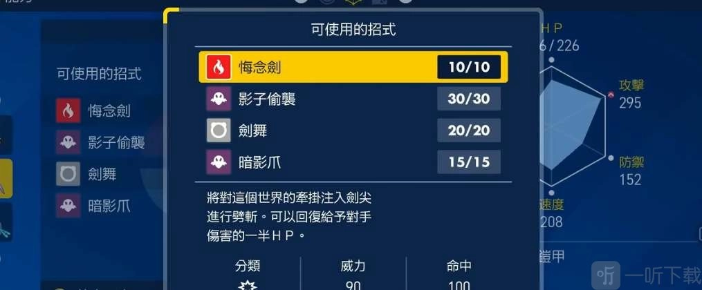 世间一切留恋皆凝聚于剑尖,以此攻向对手,此乃火属性物理招式。对手受创后,会从其伤口汲取生命能量,不过自身回复的 HP 为给予对手伤害的一半。