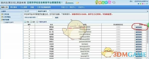 6、点击需重置密码的学生对应的“重置密码”按钮。