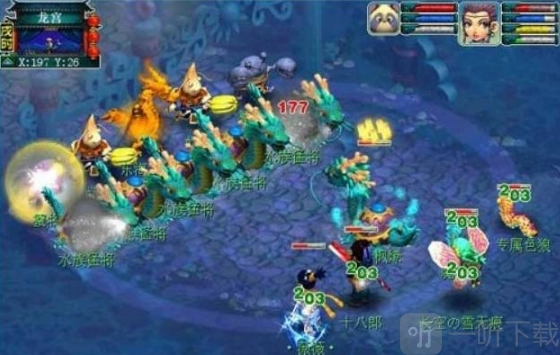 2、龙宫内寻找阿盘(坐标197,22)(我们连刷两次坐标都是这个)。