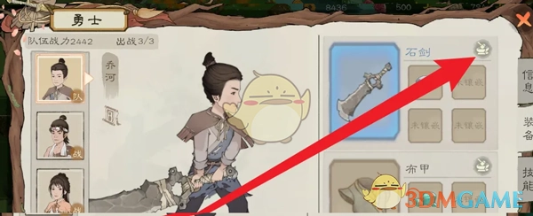 2. 在勇士的详情页面,点击右侧菜单栏里的装备选项。