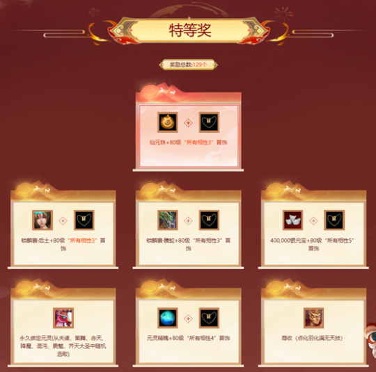 本期熔炼仙丹特等奖新增锁麟囊·后土、锁麟囊·螣蛇、相5首饰、点化羽化全满的蓐收等重磅奖励。