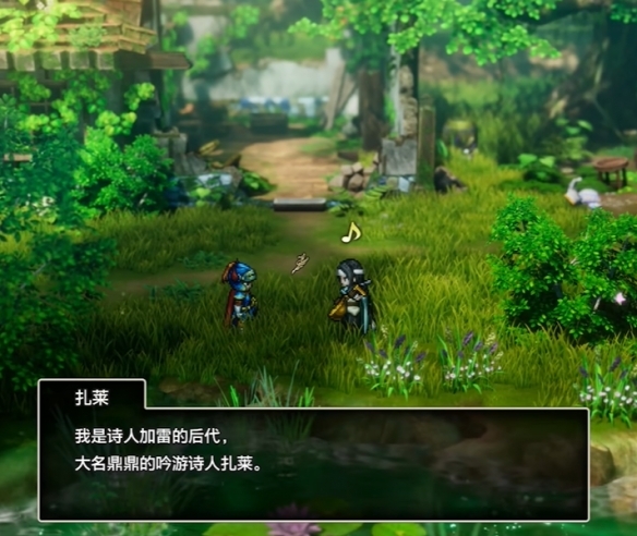 继续往前走,在池塘附近能看到头上有感叹号的NPC,他就是扎莱。