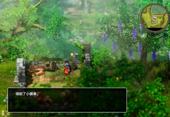 在里面仔细翻找,能在一间屋子旁边的木桶里搜到一枚小小的徽章。