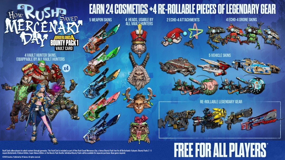 2K 和 Gearbox 正全力开发未来的赏金包,这些内容将更丰富,并满载玩家们一直期待的精彩内容。敬请期待!