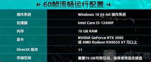 显卡需达到NVIDIA GeForce RTX 3060 ,或AMD Radeon RX6650 XT及更高规格。