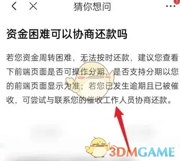 3、最终进入客服界面,查看协商还款的方式。