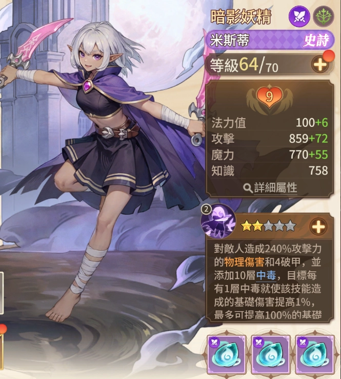该角色选用米丝蒂,主要凭借技能来造成伤害。借助叠毒这一方式,能够提升技能的基础伤害。