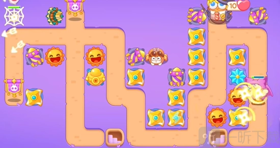 3、会出现许多蜘蛛利用蜘蛛丝困住咱们的炮台,所以一旦发现有蜘蛛,我们要立刻先把蜘蛛消灭掉,接着再打掉蛛网。
