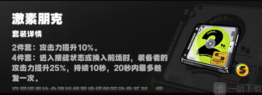 其次激素朋克四件套也可以用,20秒CD的加攻冷却与可琳短时上场的属性相契合,若是有也可以使用。